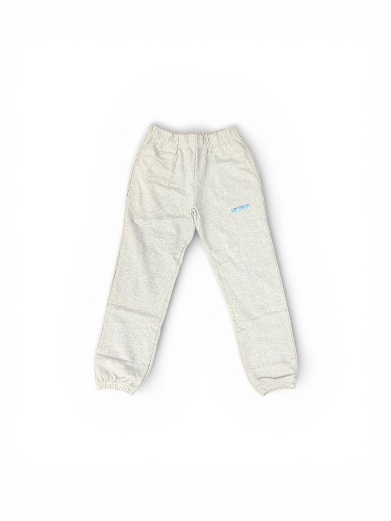 The SELFPAID Joggers in Heather Grey with Ice Blue logo. Premium heavyweight joggers featuring the SELFPAID logo on the left leg in ice blue. Built with an elastic waistband, drawstring closure, and tapered cuffs for a clean silhouette.